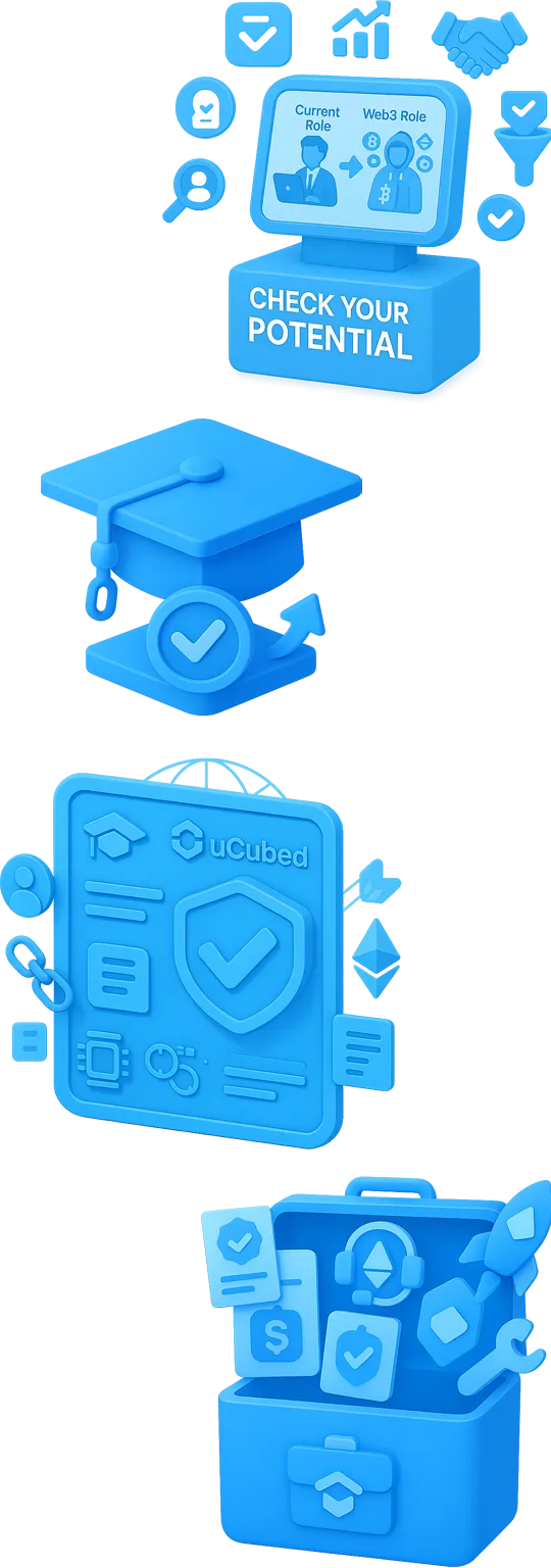 uCubed helps aspiring Web3 professionals by pairing their existing education, experience, personal brand and skills and with Web3 Fluency, Web3 Credentials, and free ongoing coaching & mentorship: